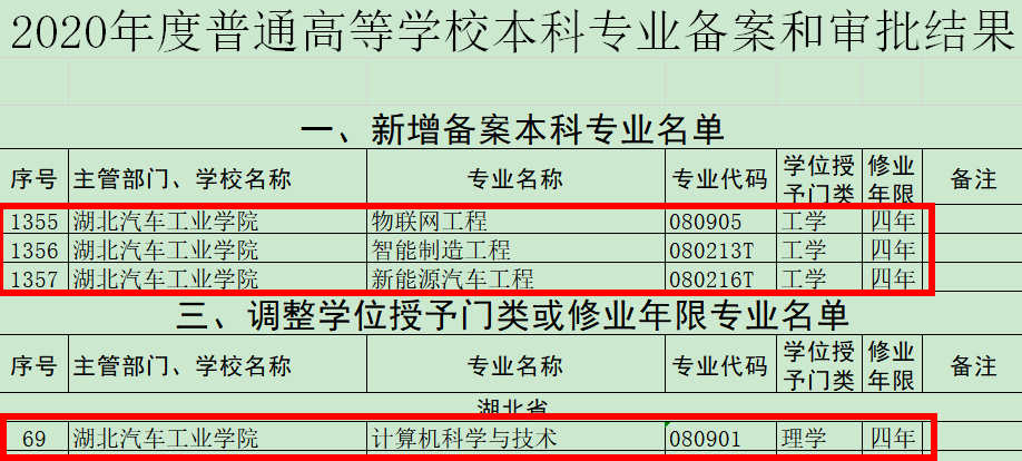 本网讯(文、图/梁姗姗)近日,教育部公布了2020年度普通高等学校本科专业备案和审批结果,我校申报的“物联网工程”“智能制造工程”“新能源汽车工程”三个本科专业成功获得教育部备案和审批,“计算机科学与技术”专业学位授予门类由工学调整为理学。