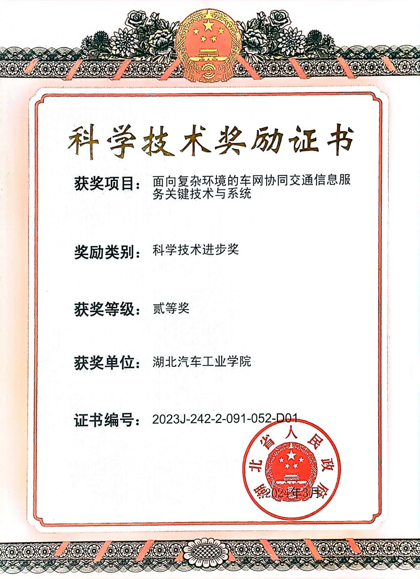 我校牵头研发的科技成果“面向复杂环境的车网协同交通信息服务关键技术与系统”获湖北省科技进步奖二等奖。项目成果在13个省市得到了产业化应用,有力支撑了交通运输部“中国高速公路交通广播示范工程”、“新一代国家交通控制网和智慧公路试点工程”项目建设;显著提高了交通信息服务水平,引领了交通行业数字化智能化的发展方向。